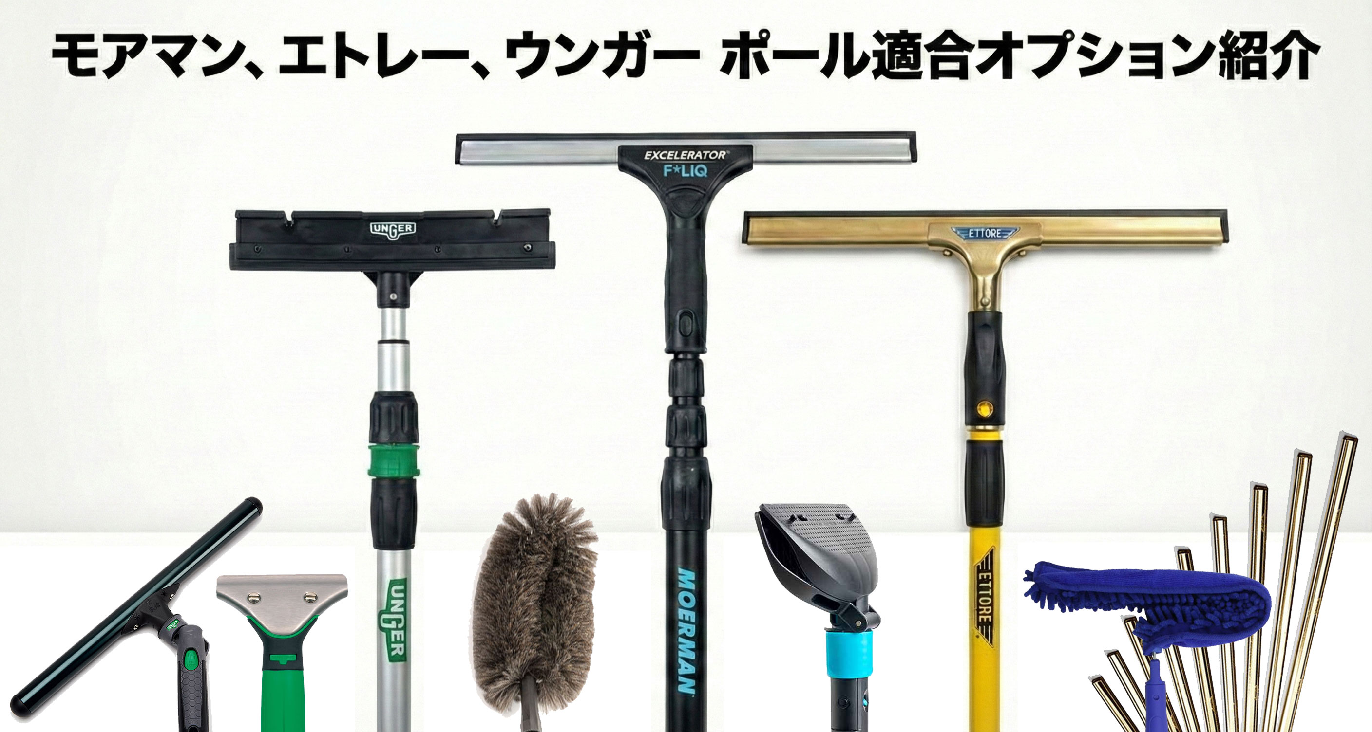 伸縮ポールを選ぶ際、「どのパーツが合うの?」「他メーカーでも使えるの?」と迷うことはありませんか? 安全に作業するには、専用ロックがしっかり固定される同じメーカー同士の組み合わせが最も確実です。一方で、「差し込み式」であればメーカーの異なるパーツも使えるため、お手持ちの道具を活かすことも可能です。 このページでは、最適な組み合わせがすぐ分かるよう、各ポールの先端形状と適合するパーツを写真付きで解説します。