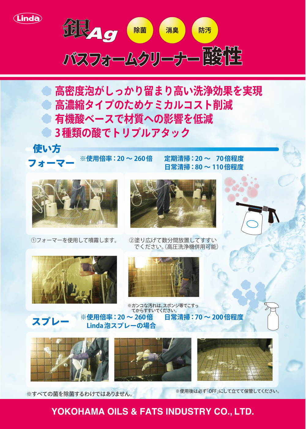 横浜油脂工業(リンダ) 銀バスクリーナーフォームタイプ 酸性[5kg×2]- 酸性バスクリーナー