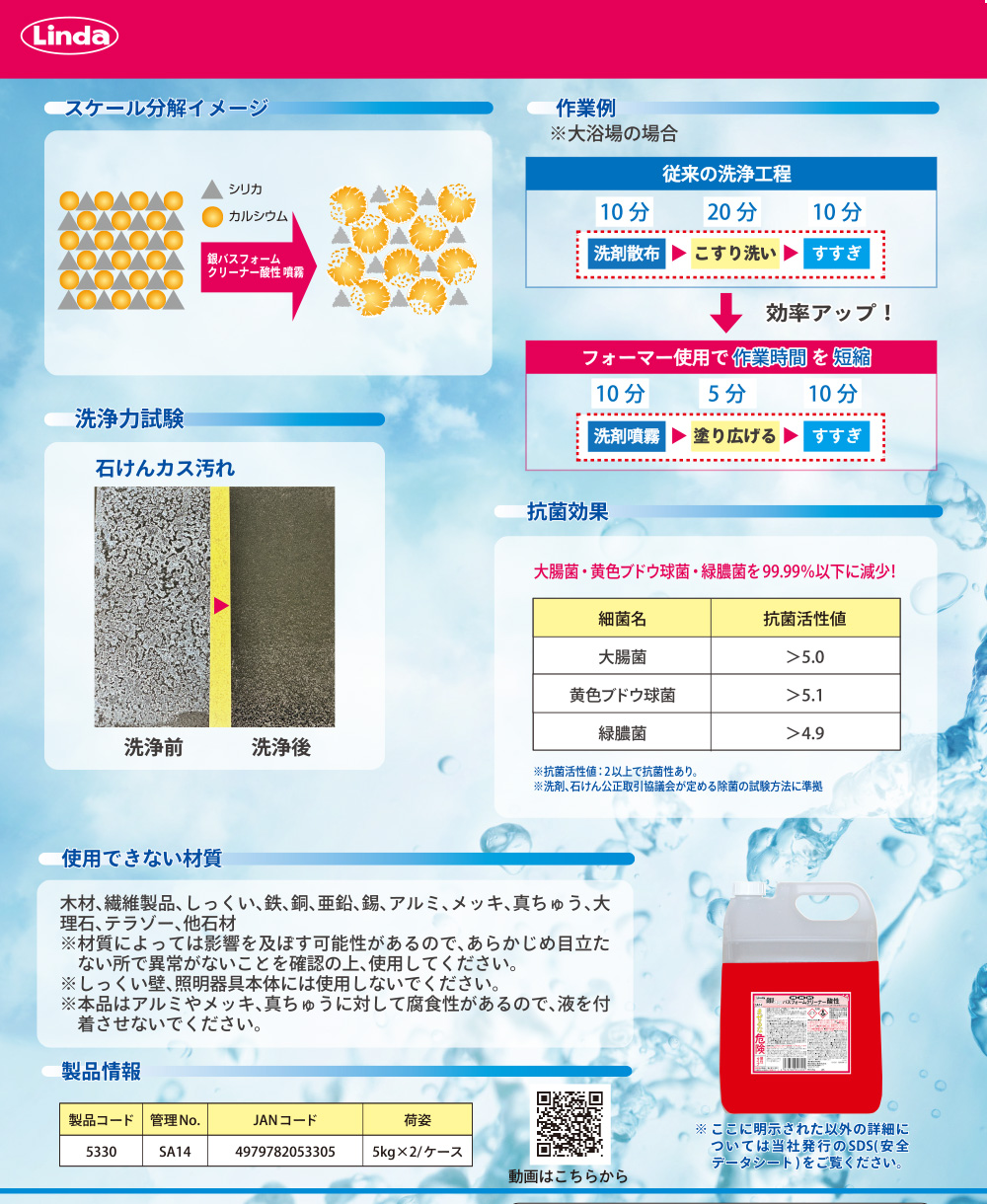 横浜油脂工業(リンダ) 銀バスクリーナーフォームタイプ 酸性[5kg×2]- 酸性バスクリーナー [11307-07-1-o_5330]
