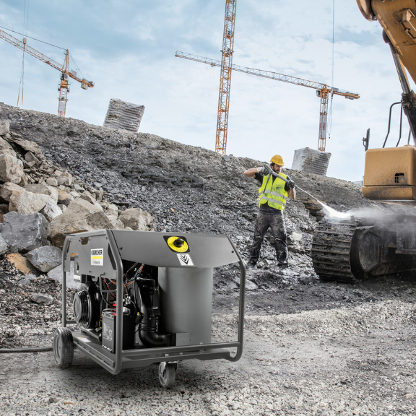 温水モデル最上位クラスの洗浄力で、重機や資材にこびりついた頑固な汚れも強力に洗浄するハイパワー仕様です。電源がない現場でも水さえあれば作業が可能です。