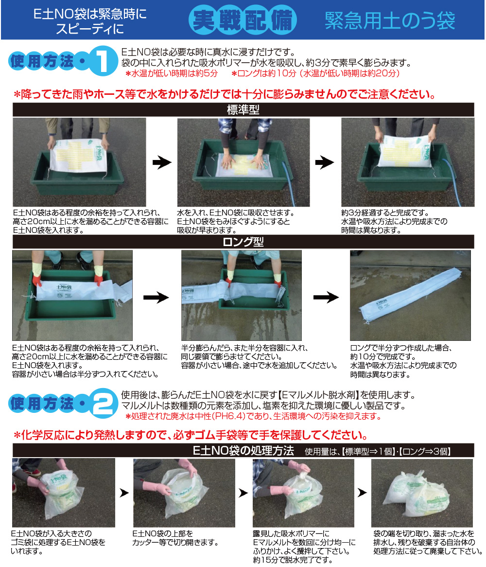 *使用後は、膨らんだE土NO袋を水に戻す【Eマルメルト脱水剤/別売】を使用します。
