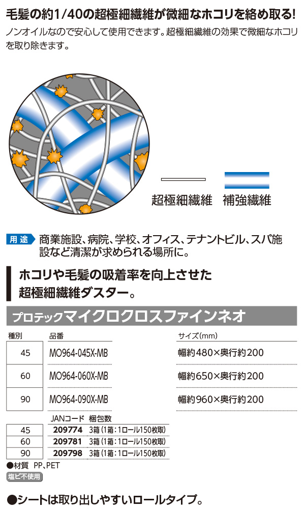 山崎産業 プロテックマイクロクロスファインネオ (1ロール150枚取) - ホコリや毛髪の吸着率を向上させた超極細繊維ダスター [11339-02-1-o_MO964-045X-MB]