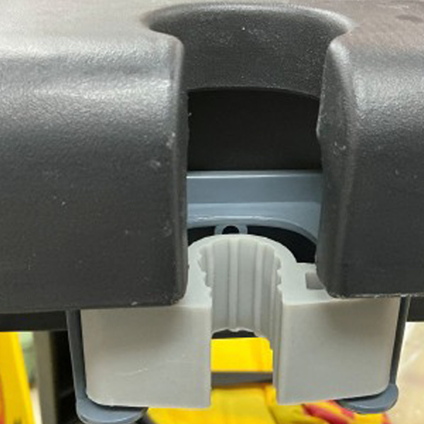 従来のホルダーでは固定が甘く、モップが外れやすいという課題を解決しました。専用クリップがハンドルを強固にキャッチし、移動中も安定した状態を保ちます。