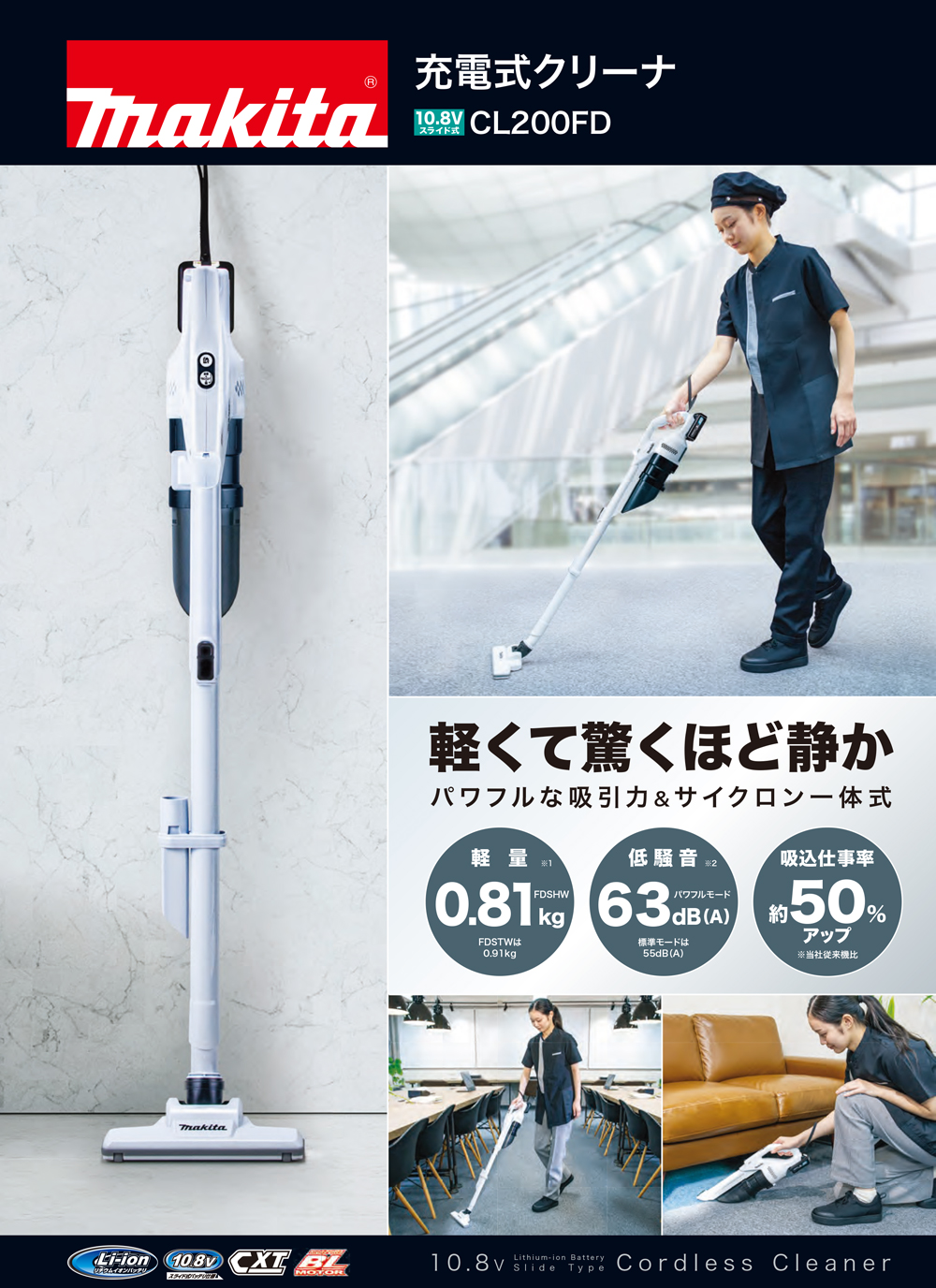 マキタ 充電式クリーナー CL200FD - リチウムイオンバッテリー充電式クリーナー[サイクロン一体式]