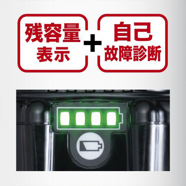 大容量でランタイム向上 & 耐久性アップ - 残容量表示(緑4灯表示)付