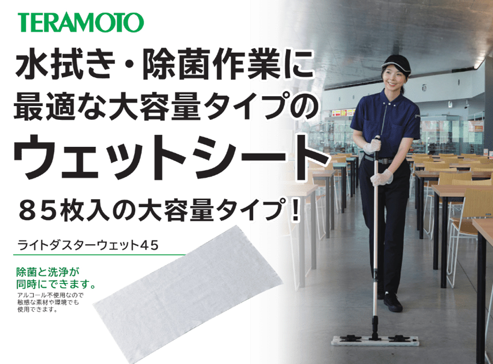 テラモト ライトダスターウェット45 [45cm] (85枚入×4) - 水拭き・除菌作業に最適なウェットシート