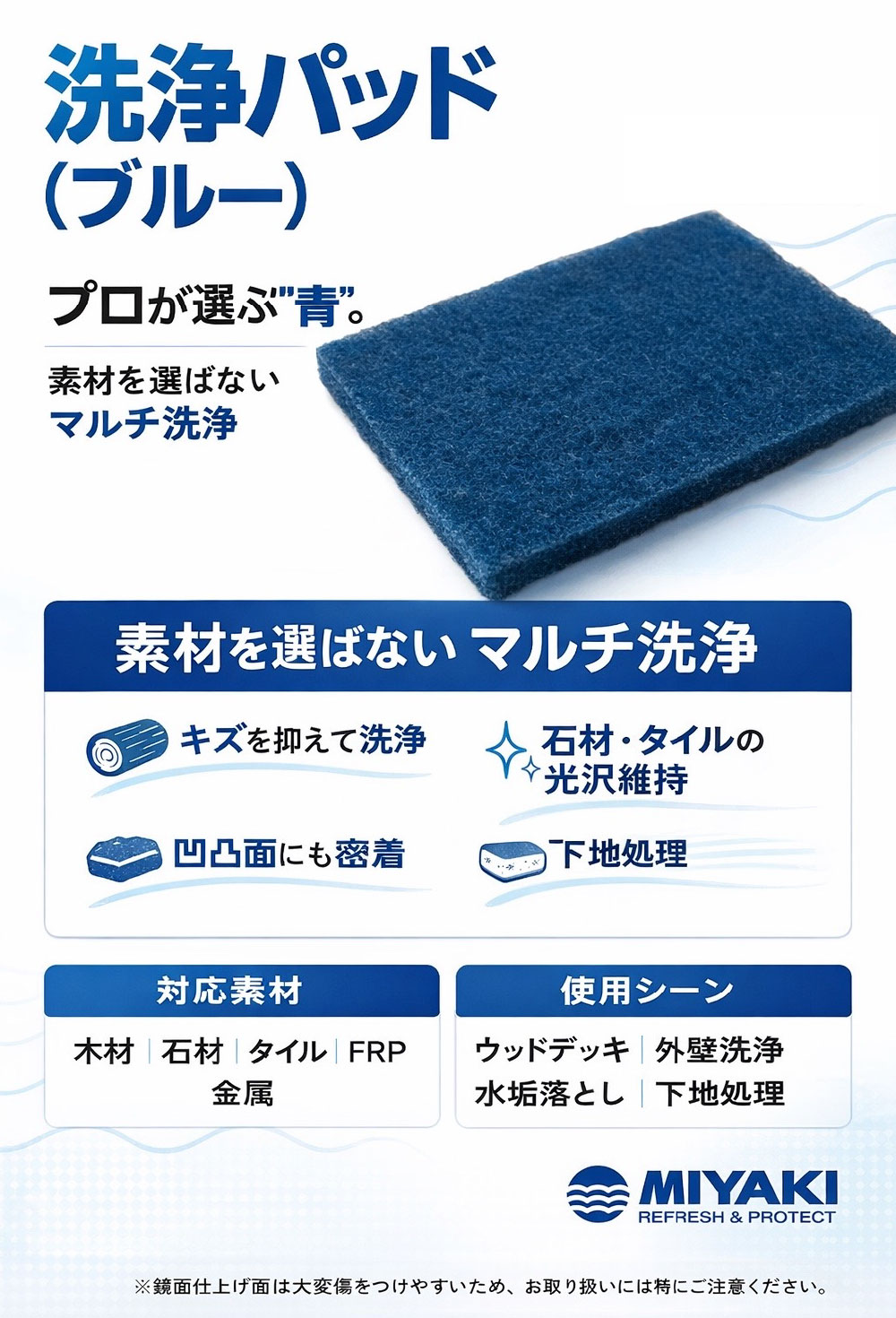 ミヤキ 洗浄パット(ブルー) (5枚入) - 素材を選ばないマルチ洗浄シート【代引不可・個人宅配送不可・#直送1000円】