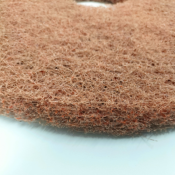 ブランドロゴや刻印はありませんが、繊維の密度や研磨粒子の質は、プロの間で定評のある「アメリコ・ブラウン(茶)」相当です。 ワックスの剥離作業や、重度の汚れ洗浄に十分なパフォーマンスを発揮します。 「ブランド名よりも、実用性とコストを最優先したい」という現場に最適な一枚です。在庫限りのため、お早めにご検討ください。