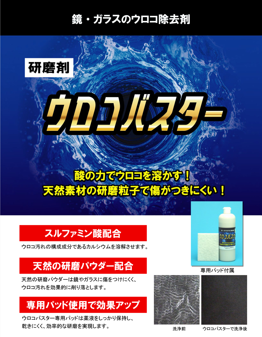 クリアライト工業 ウロコバスター [450g] (専用パッド付) - 鏡・ガラスのウロコ除去剤
