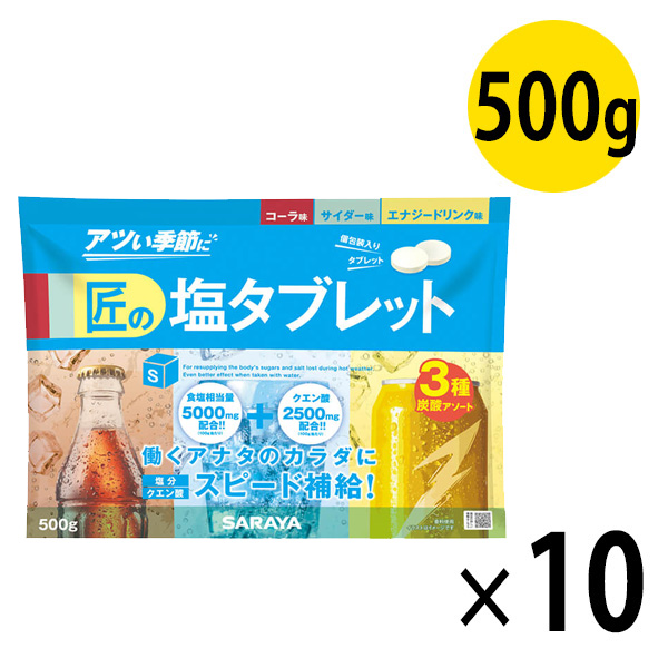 サラヤ 匠の塩タブレット 炭酸系3種アソート [500g×10] - 人工甘味料不使用の塩タブレット【代引不可・個人宅配送不可】 [11517-03-1-d_28311*10*]