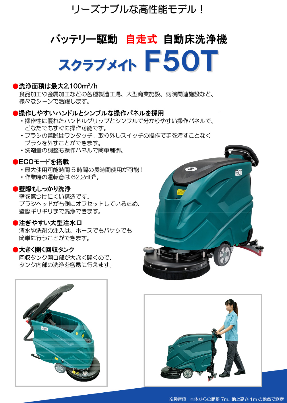 - ・作業時の運転音は62.2dB※。