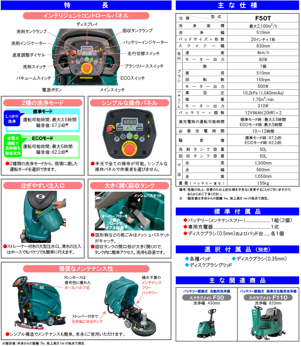 【リース契約可能】蔵王産業 スクラブメイト F50T - バッテリー駆動 自走式 20インチ 自動床洗浄機【代引不可・個人宅配送不可】 [11547-05-1-d_1024300000005]