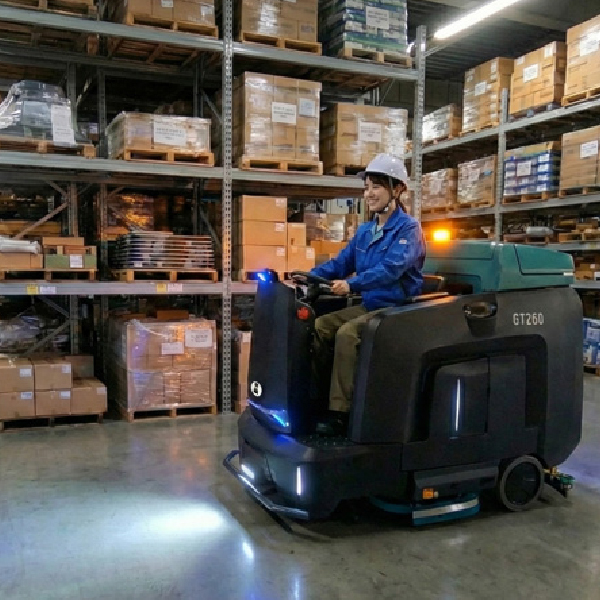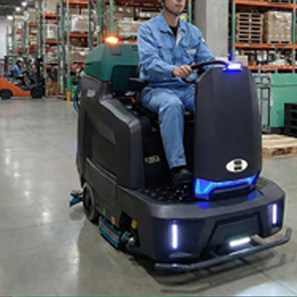 広い屋内の床洗浄に適した、次世代ライドオンスクラバー
