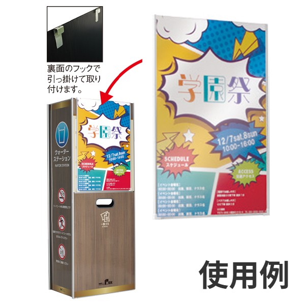●ミセル ボックス(差替え式)に取り付けられます。裏面のフックで引っ掛けて取り付けます。