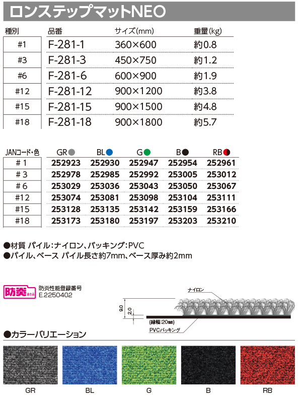 | 材質 | パイル:ナイロン、バッキング:PVC |