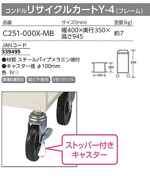 山崎産業 コンドル リサイクルカートY-4フレーム【代引不可・個人宅配送不可】 [165-02-1-d_C251-000X-MB]