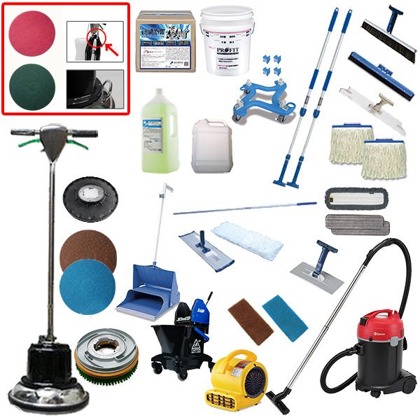 床洗浄から床ワックス塗布までを行うことができるポリッシャーセットです。これさえあれば、必要最低限の床メンテナンスを行うことが可能です。またそれぞれの商品を別々に購入するよりお得な特別価格となっております。
