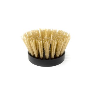 強靭な研削力により、石材の目荒らし、長年の蓄積したエフロ除去、鉄鋼表面の錆取りにも瞬時に効果を発揮します。さらには数十年もののアクリル樹脂ワックスの剥離作業においてはサイドエリアやコーナーエリアなどのひどく堆積し完全に固化した塗膜も水だけで瞬時に研削することが可能です。剥離作業における隅の剥離の難作業には高い作業効率を発揮します。 ポリッシャー用ダイヤモンドブラシの「ケズリン」の補助アイテムとしても欠かすことが出来ない小回りの利いたツールです。頑強な毛材は非常に高い耐久性でコストパフォーマンスにも優れています。