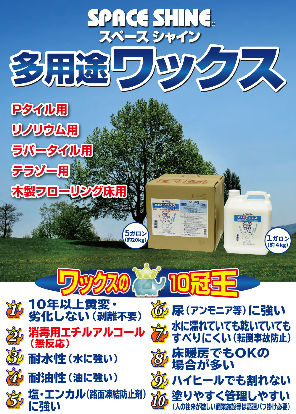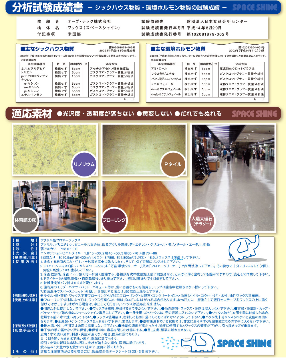 消毒液(エチルアルコール・ウエルパス)に無反応で、シックハウス症候群、環境ホルモン、PRTR法対応のワックスです。